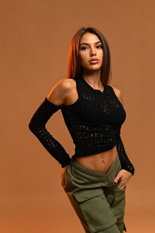 Горнище - Pointelle Knit Cold Shoulder Thumb Holes