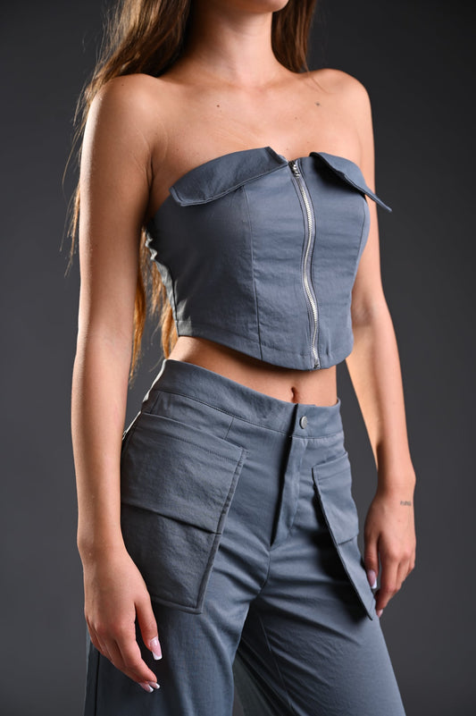 Халтер Топ - Draped Collar Chain Detail Tie Backless Glitter
