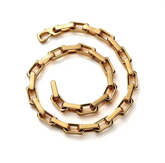 Stainless Steel Lock Box Cuban Chain - Unisex - Golden