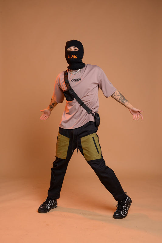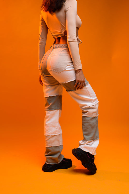 Multicolor Straight Jeans Colorblock (Beige and Green)
