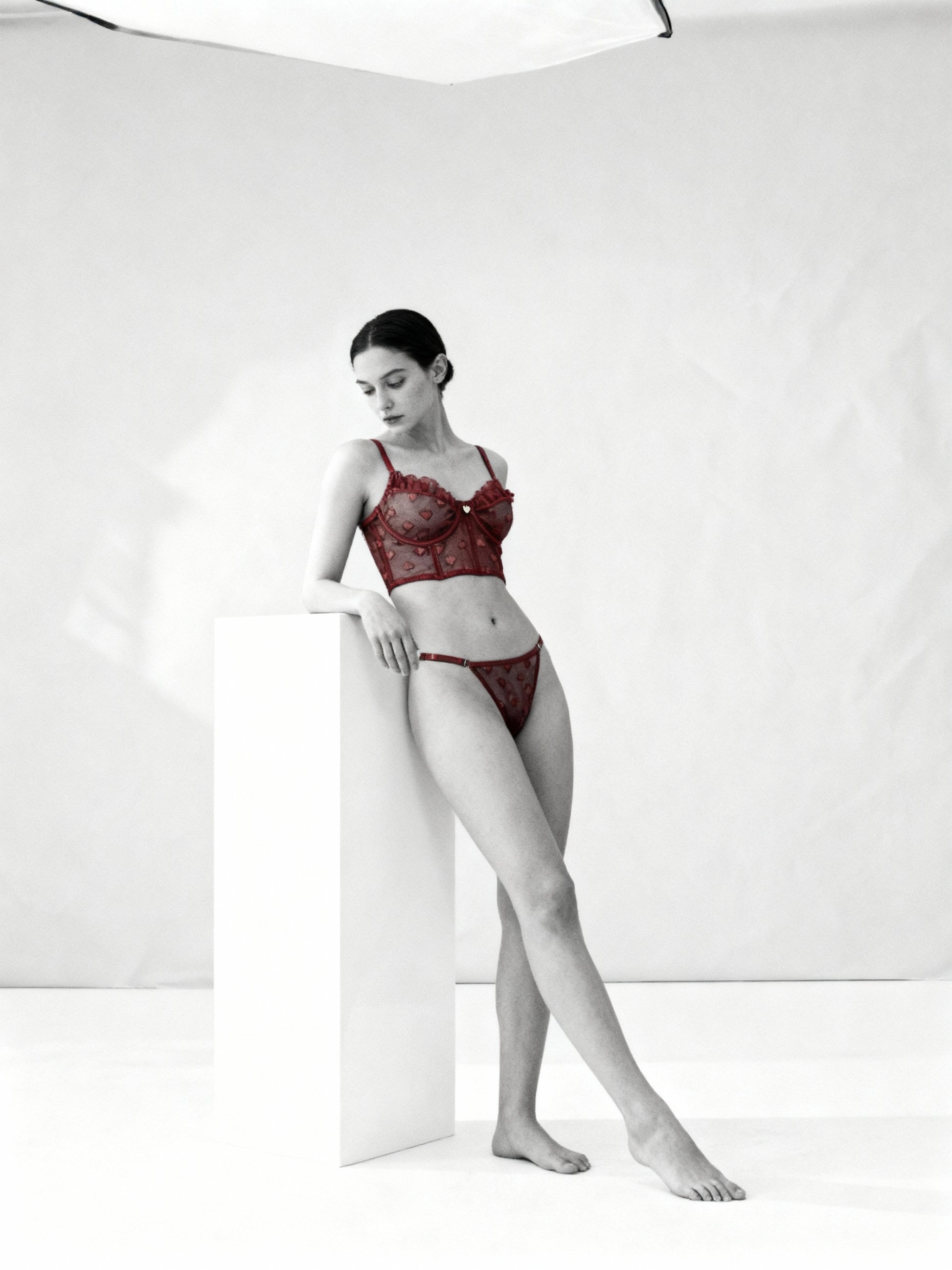 Комплект сутиен с банели, без подплънки и прашка. Прозрачна, леко разтеглива материя. 95% полиестер, 5% еластан