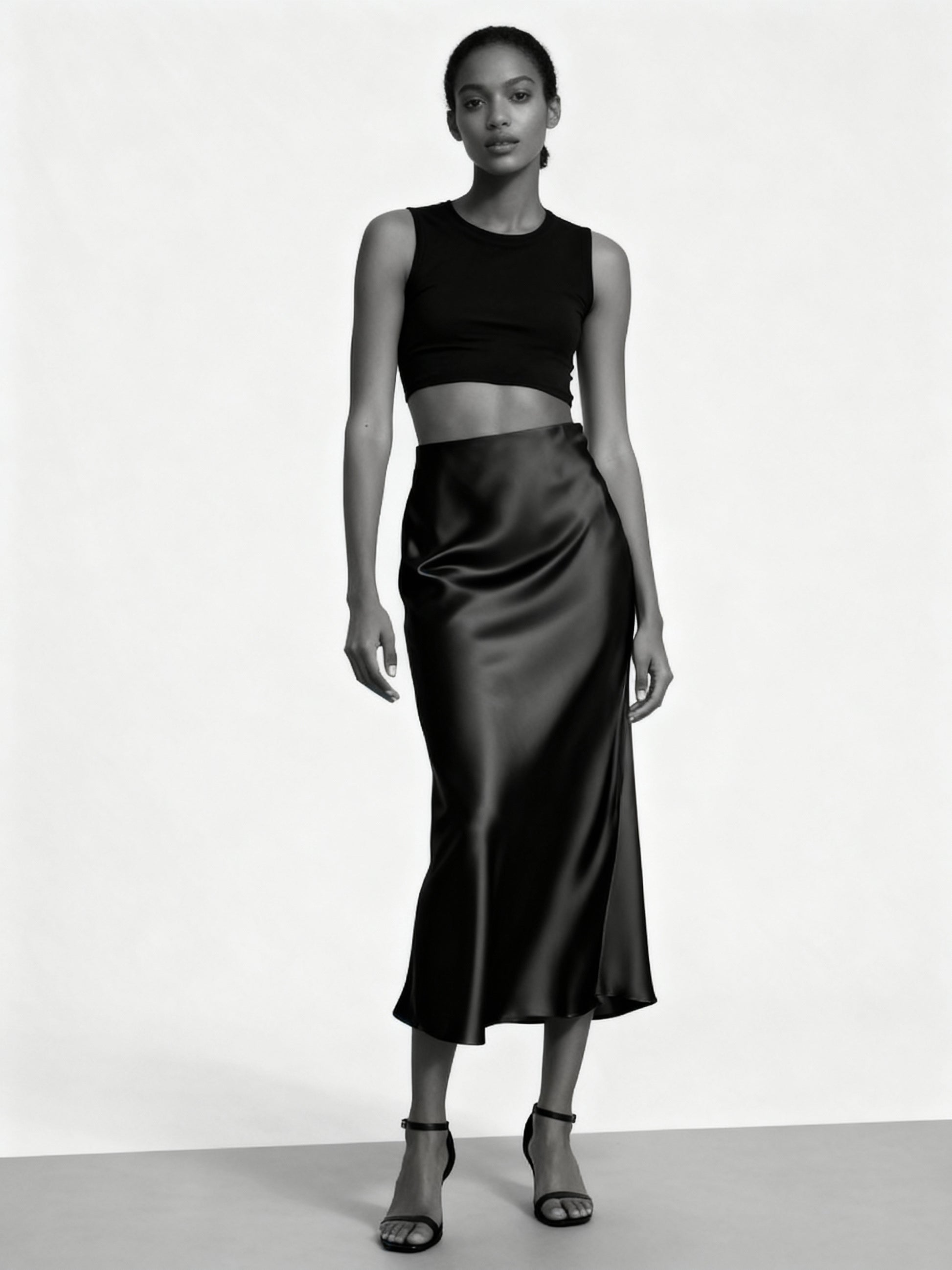 Сатенена пола с вътрешен ластичен колан. Без подплата. Неразтеглива материя.